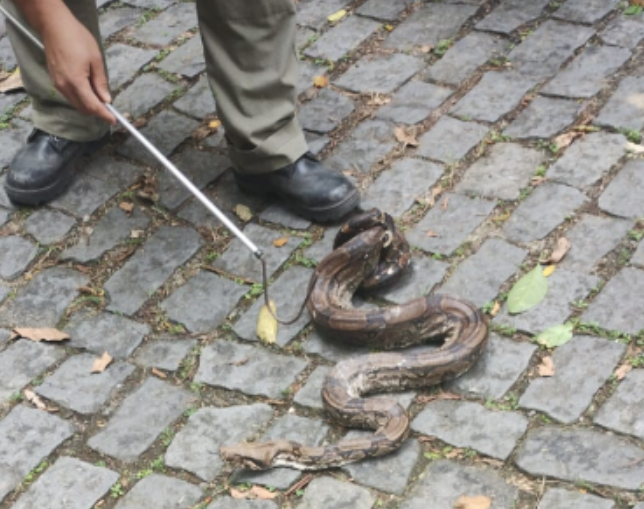 Na última quinta-feira (9), agentes do Instituto Estadual do Ambiente (Inea) realizaram a liberação de duas jiboias (Boa Atlântica) no Parque Estadual da Pedra Branca (PEPB), localizado em Realengo, na Zona Oeste do Rio de Janeiro. As serpentes foram resgatadas por bombeiros e posteriormente entregues aos profissionais do Inea.