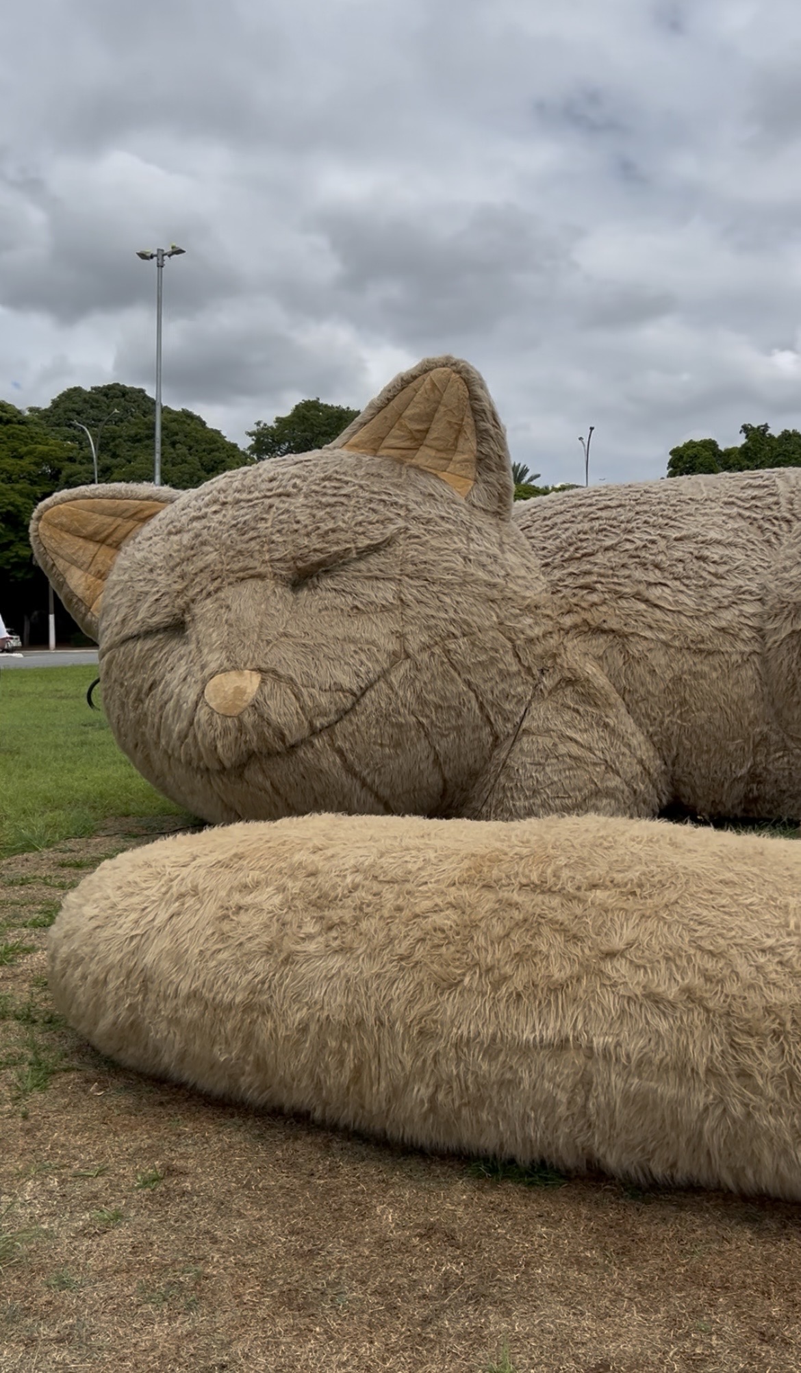 A outra instalação é o Círculo de Paz, um gato gigante adormecido na clássica posição de repouso dos felinos. Mais do que contemplativa, a obra funciona como um mobiliário público de design que convida as pessoas a interagirem e criarem vínculos afetivos. Como um sofá circular, adultos e crianças podem se acomodar para descansar, contemplar e interagir.